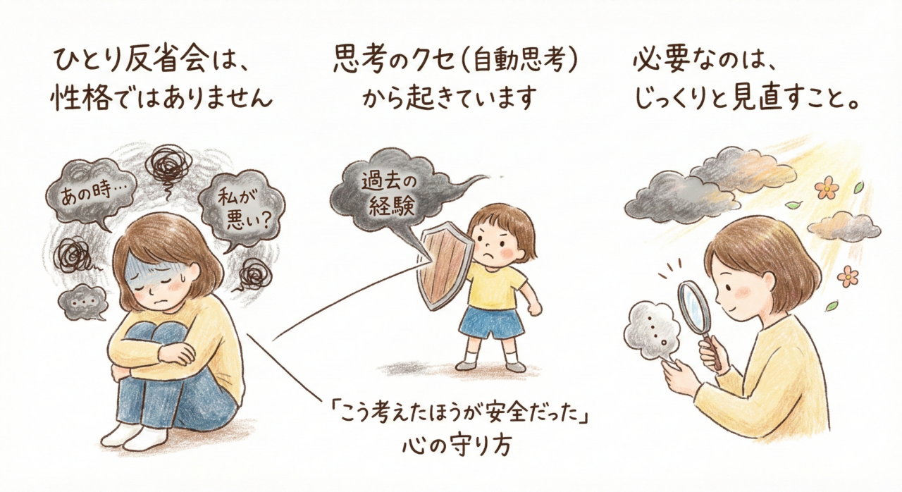 ひとり反省会研究所は、自分を責める毎日から抜け出すための場所です